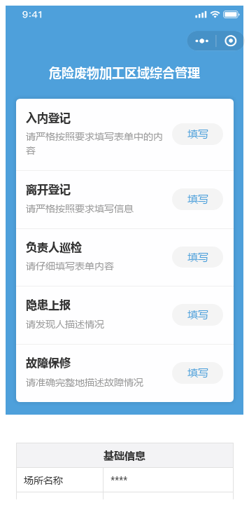通过机智熊二维码平台的【危险废物管理】模板,您可为每个危废暂存区域(如车间收集点、危废仓库、转运容器)生成专属二维码。相关人员扫码后,可根据角色完成操作: