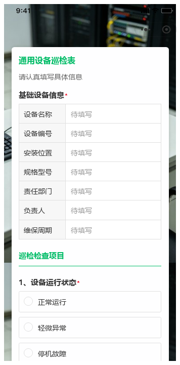 在机智熊二维码平台选择【通用设备巡检模板】,可自定义巡检项(如增加“油位”“异响”),设置必填字段和照片要求。