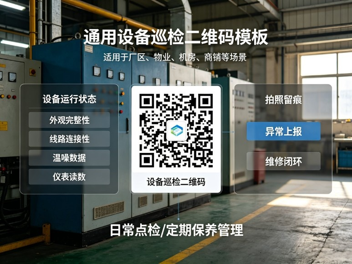 在制造、能源、物业等行业,设备漏检、假检常导致小故障演变成大停机。如何让巡检真实有效、异常及时处理?机智熊二维码的【通用设备巡检模板】提供轻量化解决方案——为每台设备生成专属二维码,巡检员扫码即可填写状态、上传照片、上报问题,记录自动汇总,无需开发,3步即可落地。